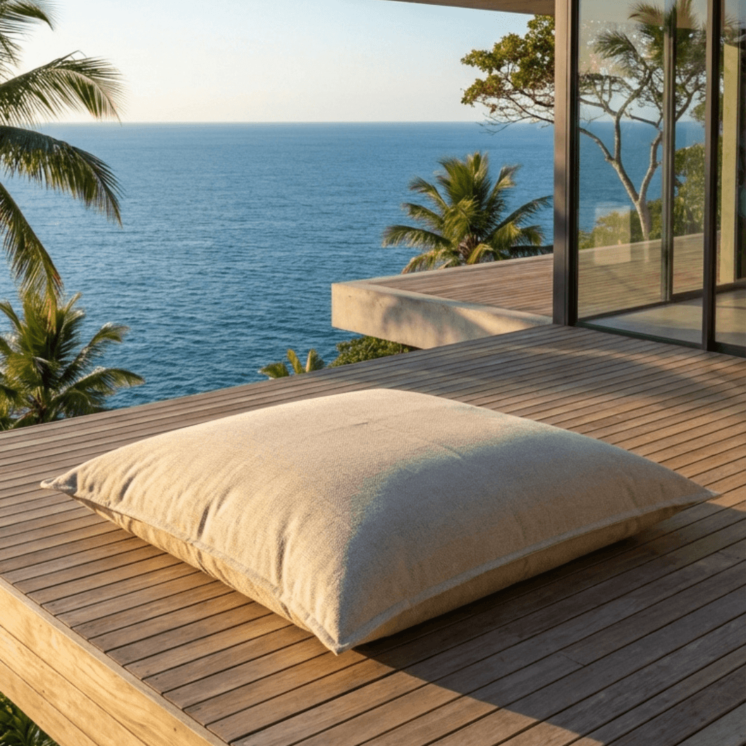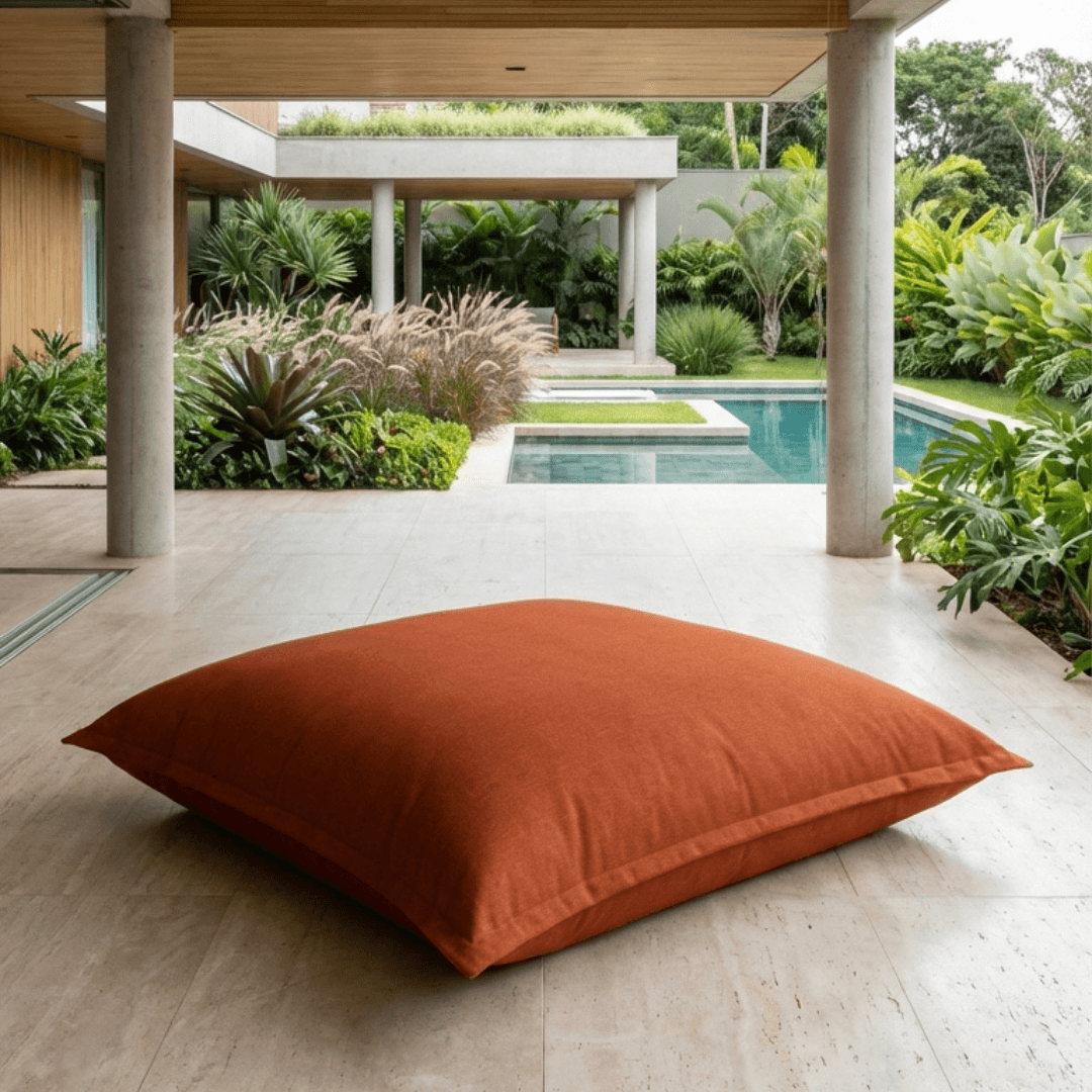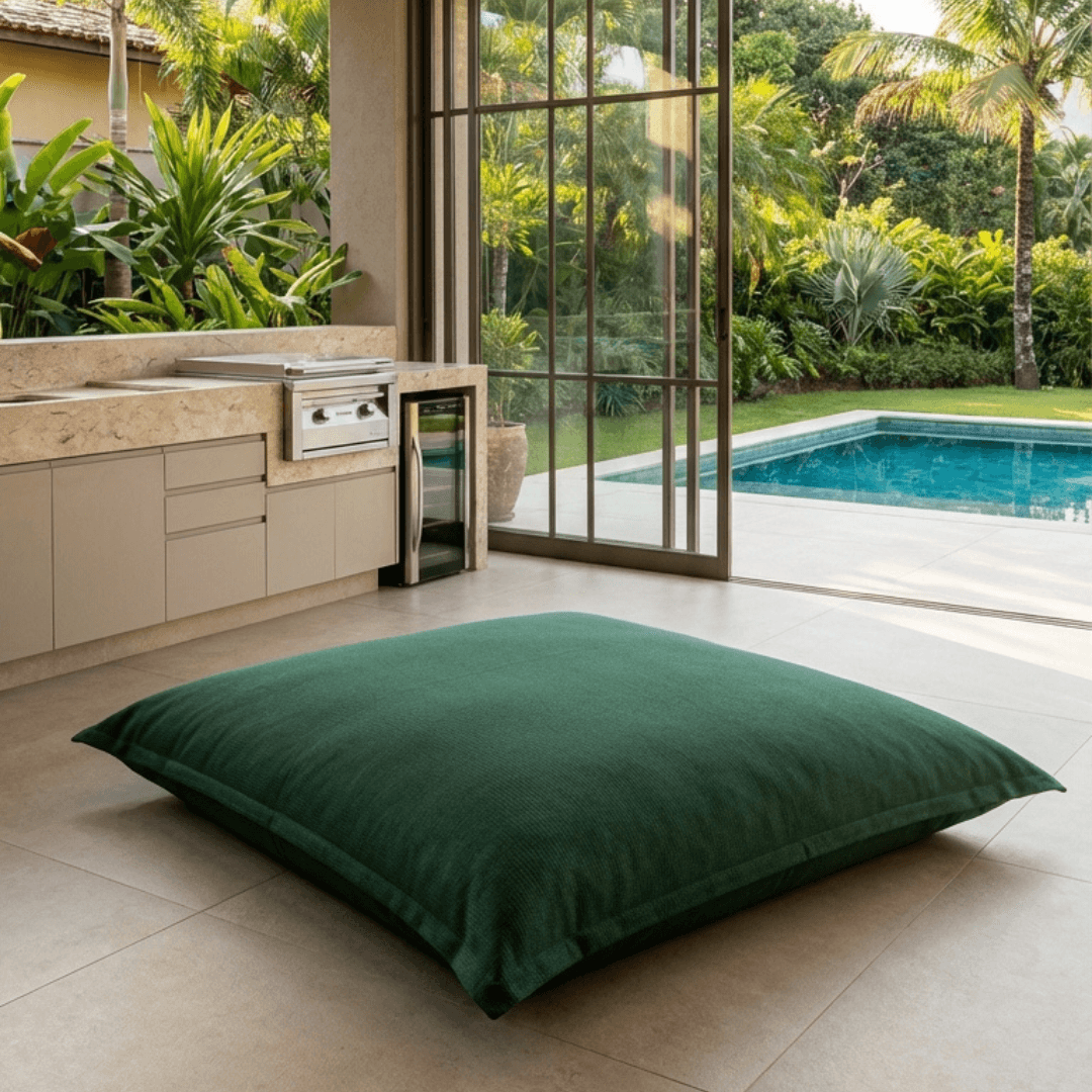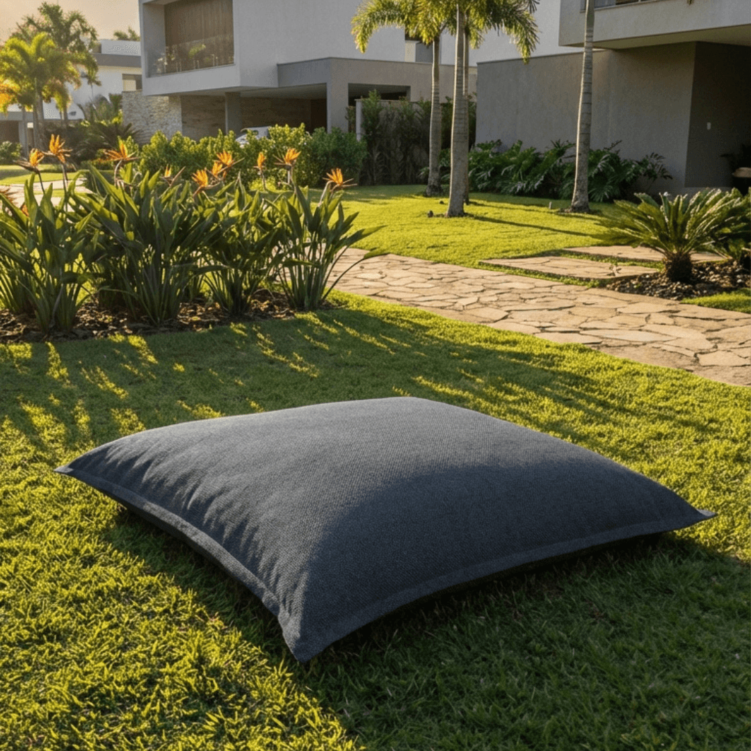 A peça possui tecnologia e design para uso no ambiente externo e interno. O enchimento utiliza EPS, um polímero indeformável, leve e impermeável que garante máximo conforto. Como não absorve água, você pode mantê-lo exposto ao tempo. A leveza da estrutura facilita o transporte entre diferentes ambientes, enquanto os tecidos de alta performance asseguram durabilidade e manutenção prática no dia a dia.