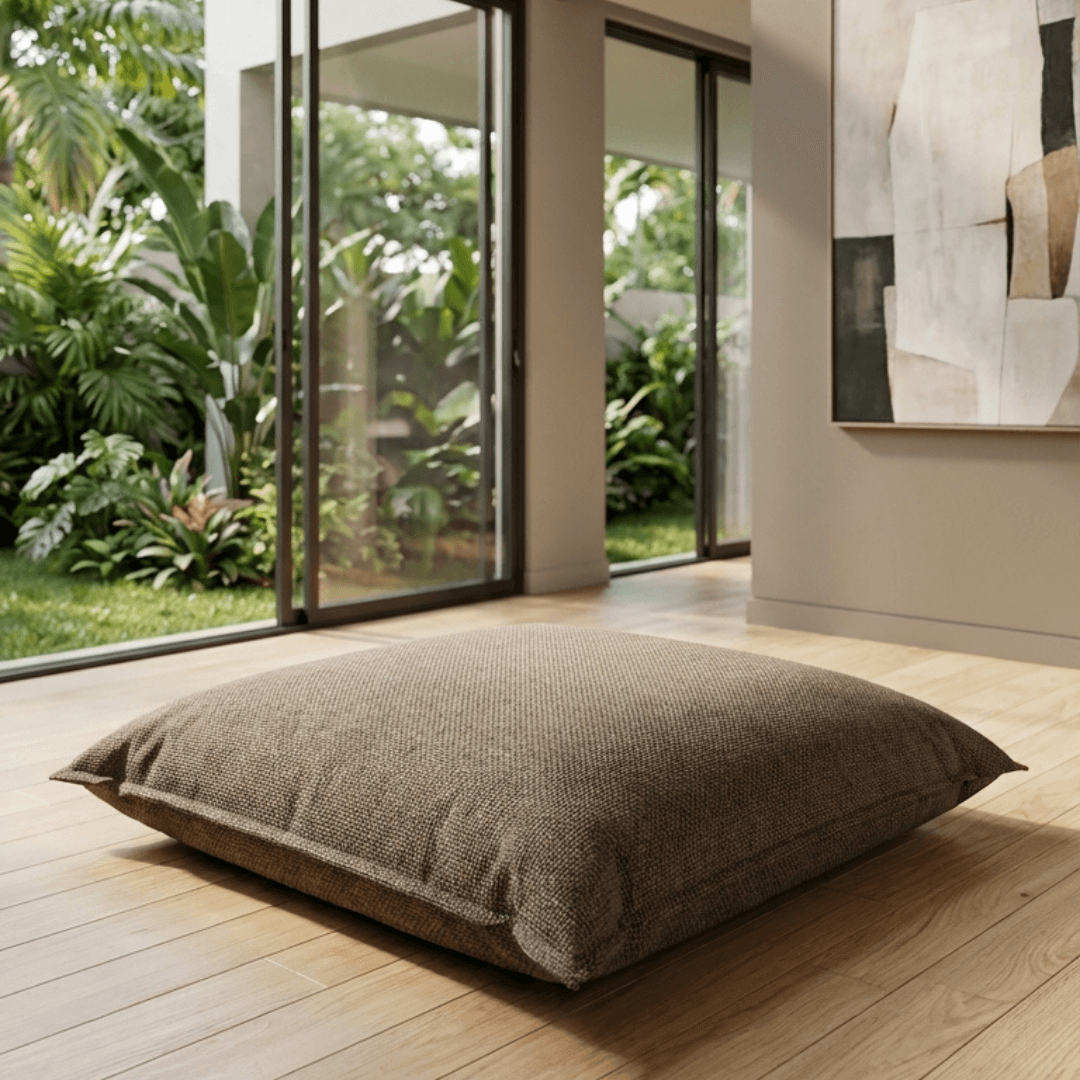 O formato generoso do Almofadão Maracaípe da HIO acomoda várias pessoas com conforto, tornando-se perfeito para reunir a família.