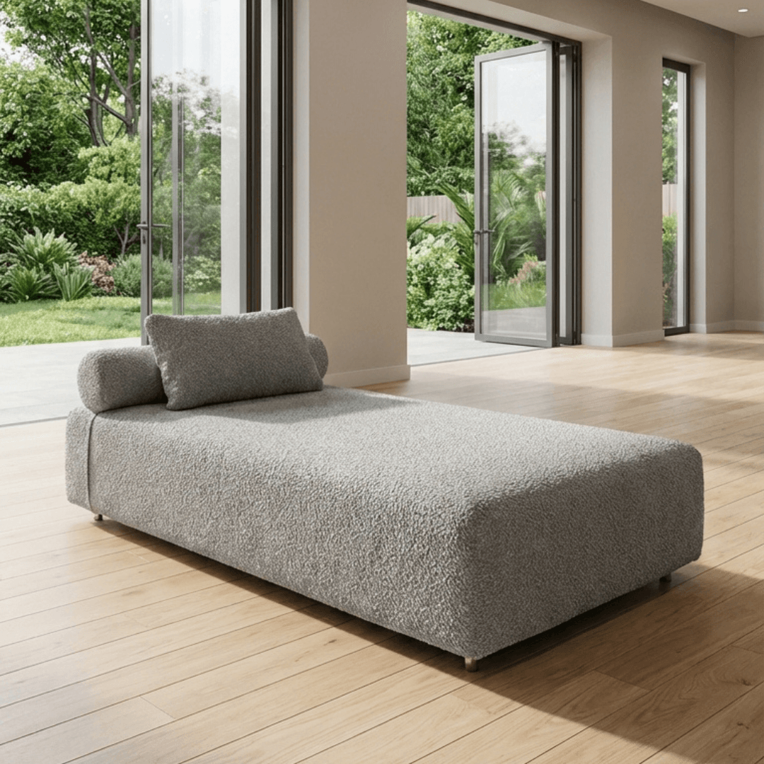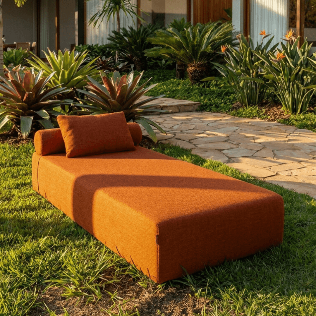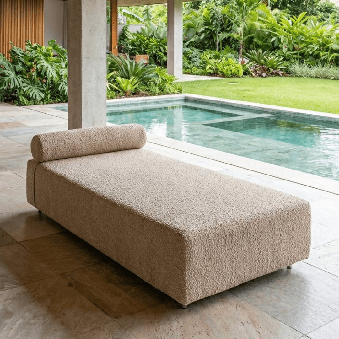 Confeccionada em um bloco maciço de espuma de alta densidade, a peça é projetada para proporcionar conforto superior. O rolinho é incorporado ao design para oferecer apoio à cabeça, possibilitando ergonomia ideal para momentos de relaxamento.