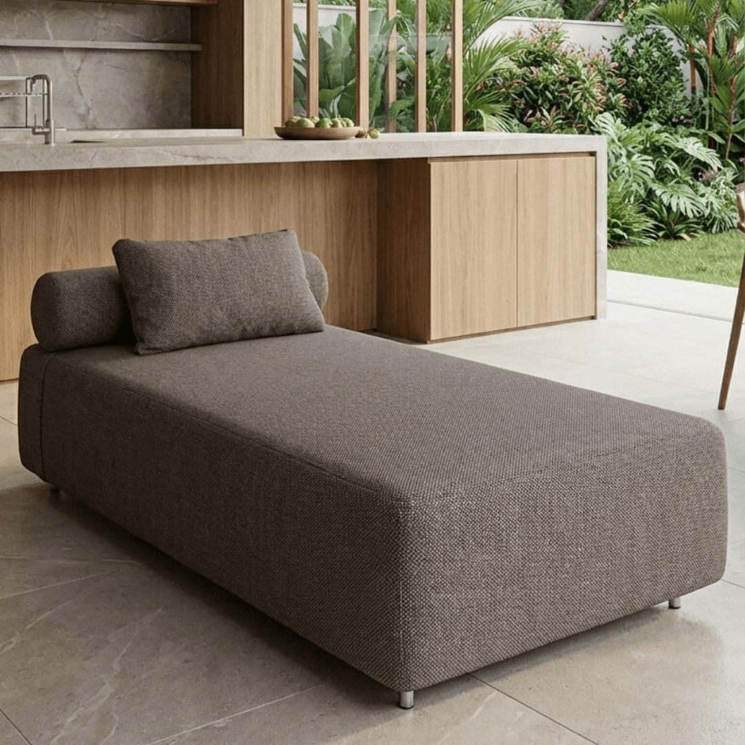 A Chaise Angra foi desenvolvida para você aproveitar o sol sem abrir mão do estilo. Seu estilo minimalista, inspirado nos hotéis boutique da Grécia e da Costa Amalfitana, permite que ela seja usada tanto no ambiente externo quanto interno.