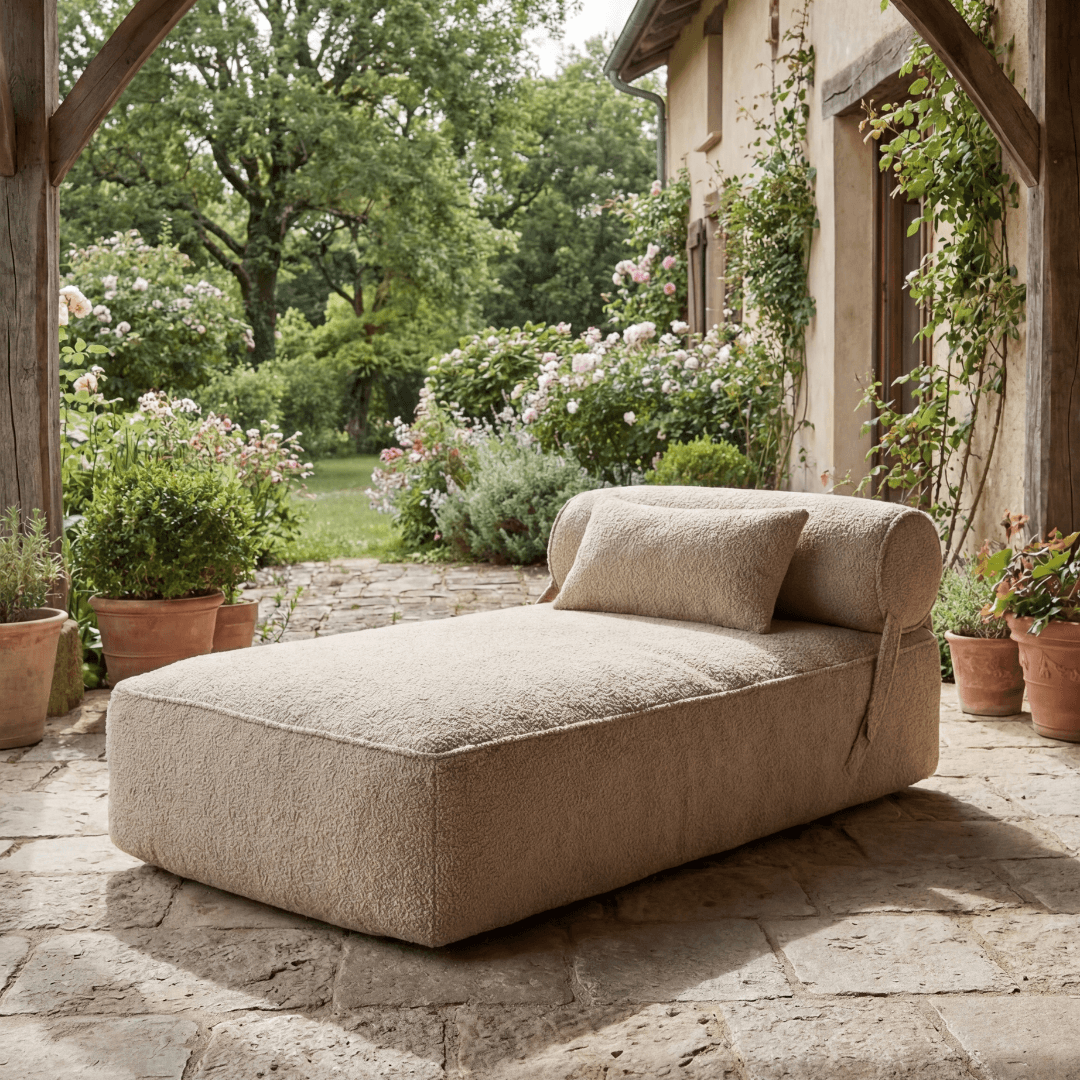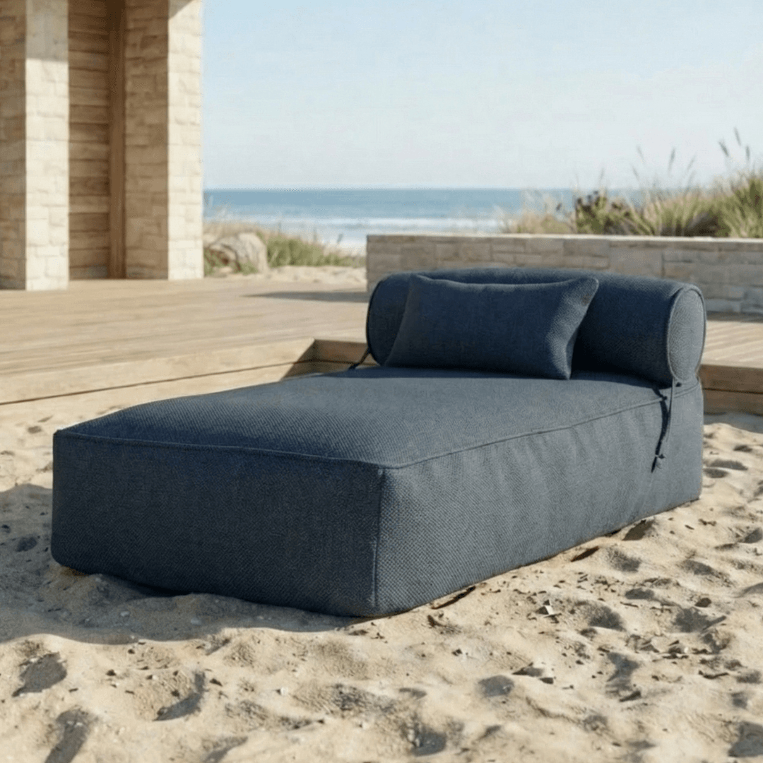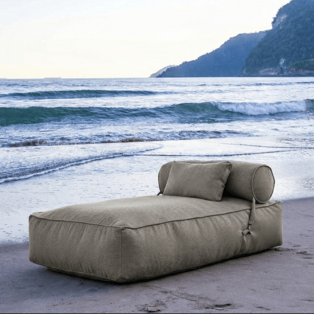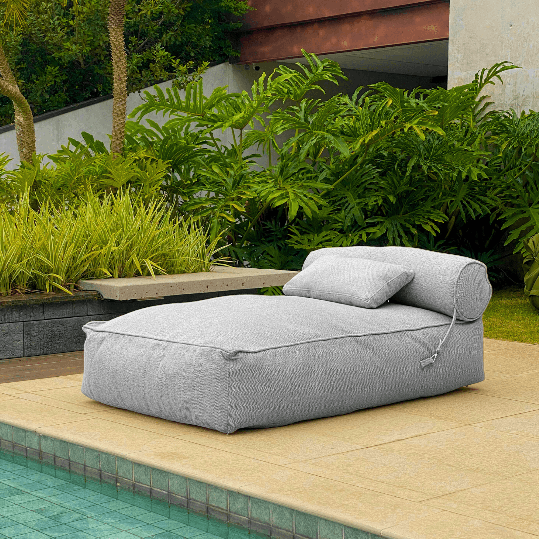 Acompanha duas opções de encosto removível — rolinho e cubo — ou utilize sem encosto para aproveitar o sol de frente ou de costas.