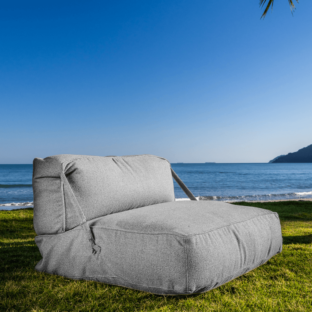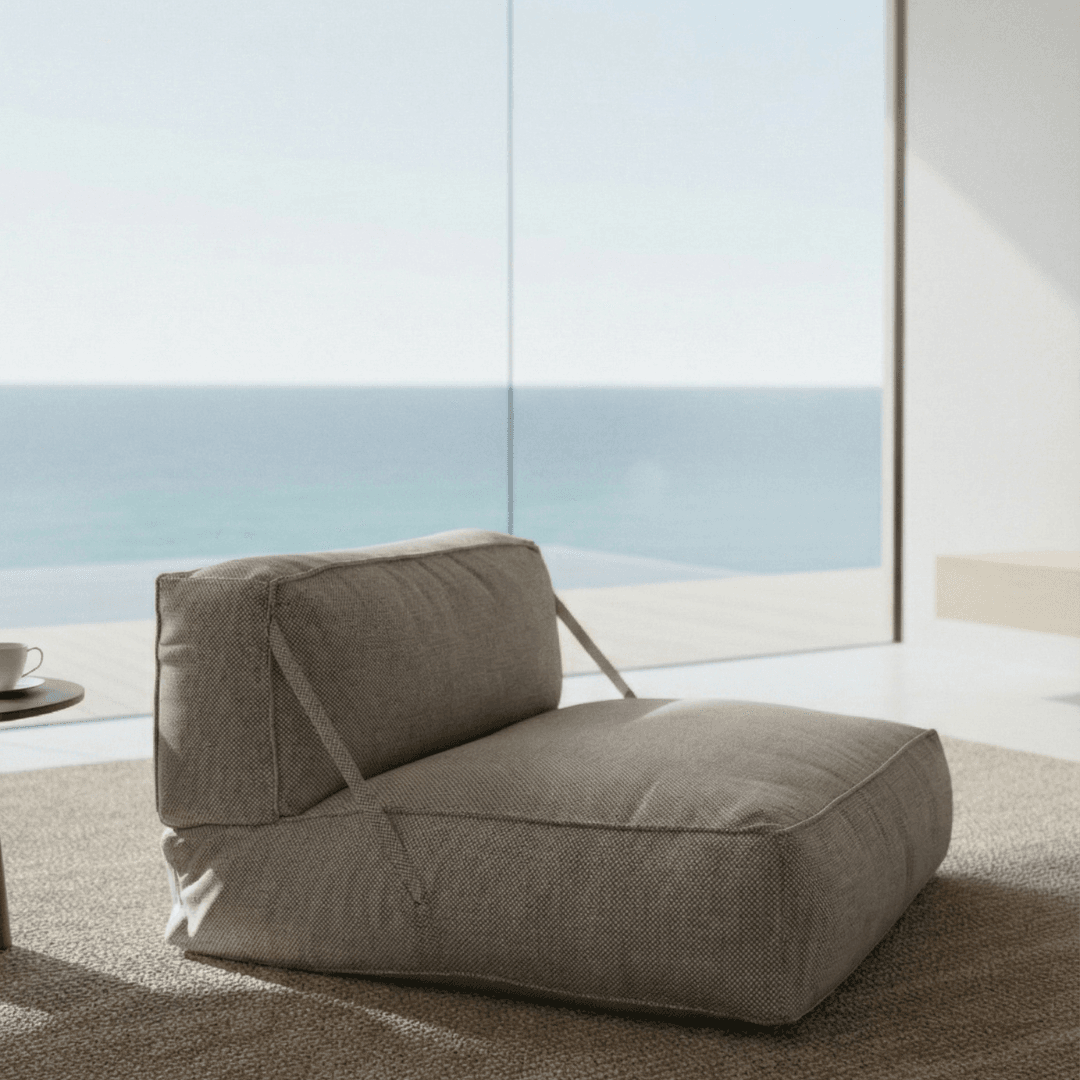 A Chaise Flutuante Itacaré é versátil e acompanha o seu ritmo. Com design inteligente e minimalista, ela se transforma em duas: use como poltrona ou como almofadão.