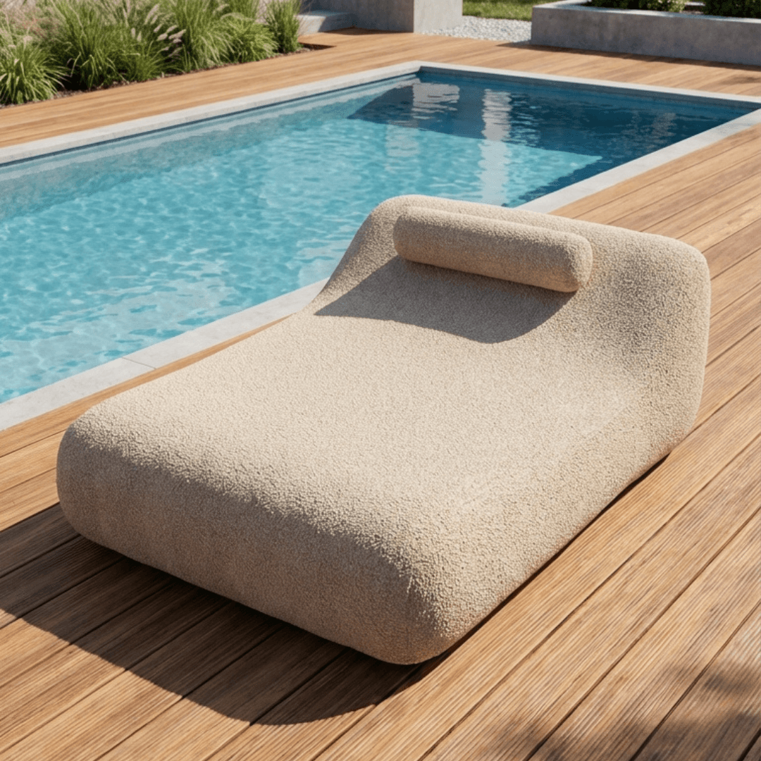 A versatilidade de um inflável é combinada à elegância de uma chaise, permitindo o uso dentro da piscina, no deck ou até no mar. Além disso, sua estrutura inflável permite que a peça não ocupe espaço quando desinflada, facilitando o transporte e o armazenamento.