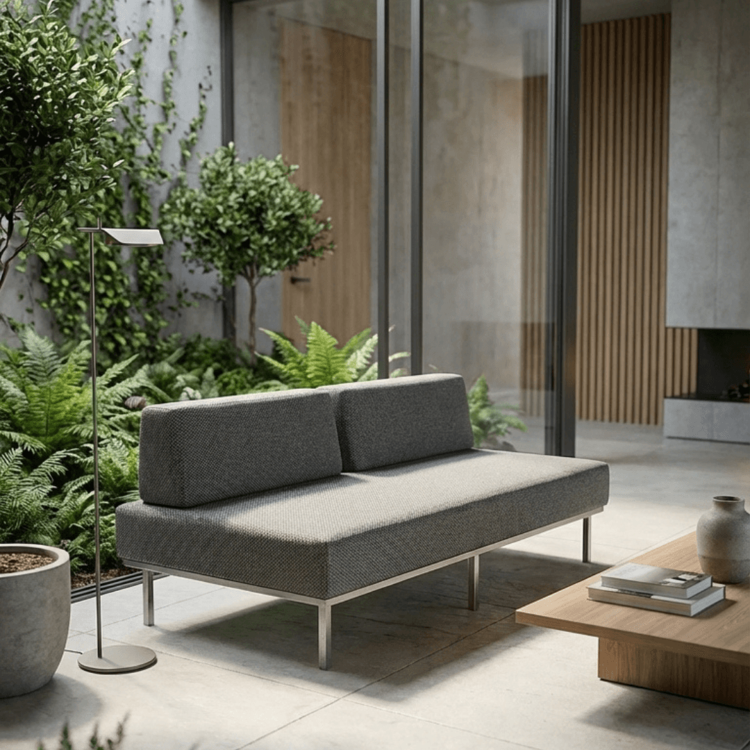 O sofá foi desenvolvido com tecnologia exclusiva da HIO, permitindo o uso versátil fora e dentro de casa com máxima eficiência. Além disso, tecidos de alta performance são utilizados para garantir durabilidade elevada, inclusive em áreas externas expostas ao tempo. Dessa forma, a manutenção é facilitada no dia a dia, enquanto o conforto e a estética são preservados por muito mais tempo.