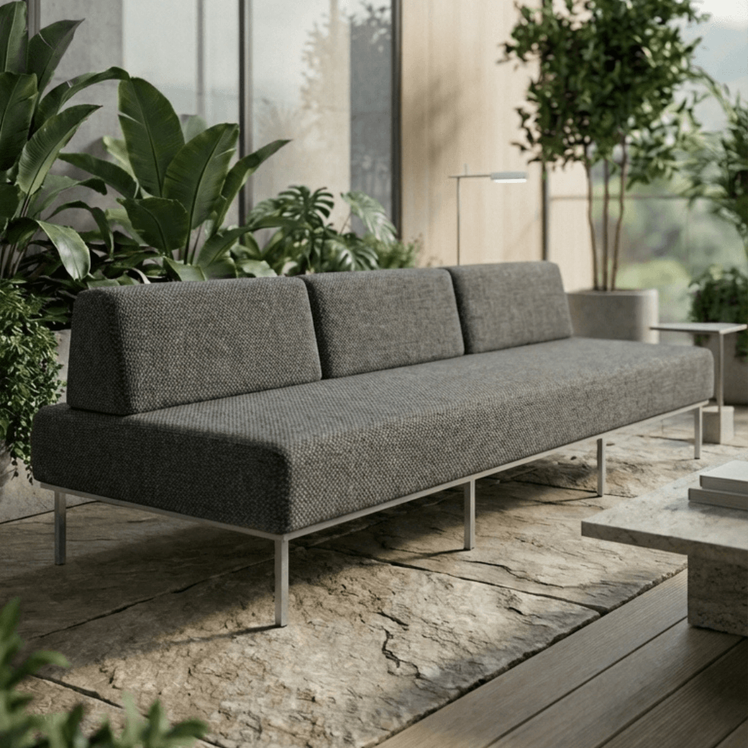 O sofá foi desenvolvido com tecnologia exclusiva da HIO, permitindo o uso versátil fora e dentro de casa com máxima eficiência. Além disso, tecidos de alta performance são utilizados para garantir durabilidade elevada, inclusive em áreas externas expostas ao tempo. Dessa forma, a manutenção é facilitada no dia a dia, enquanto o conforto e a estética são preservados por muito mais tempo.