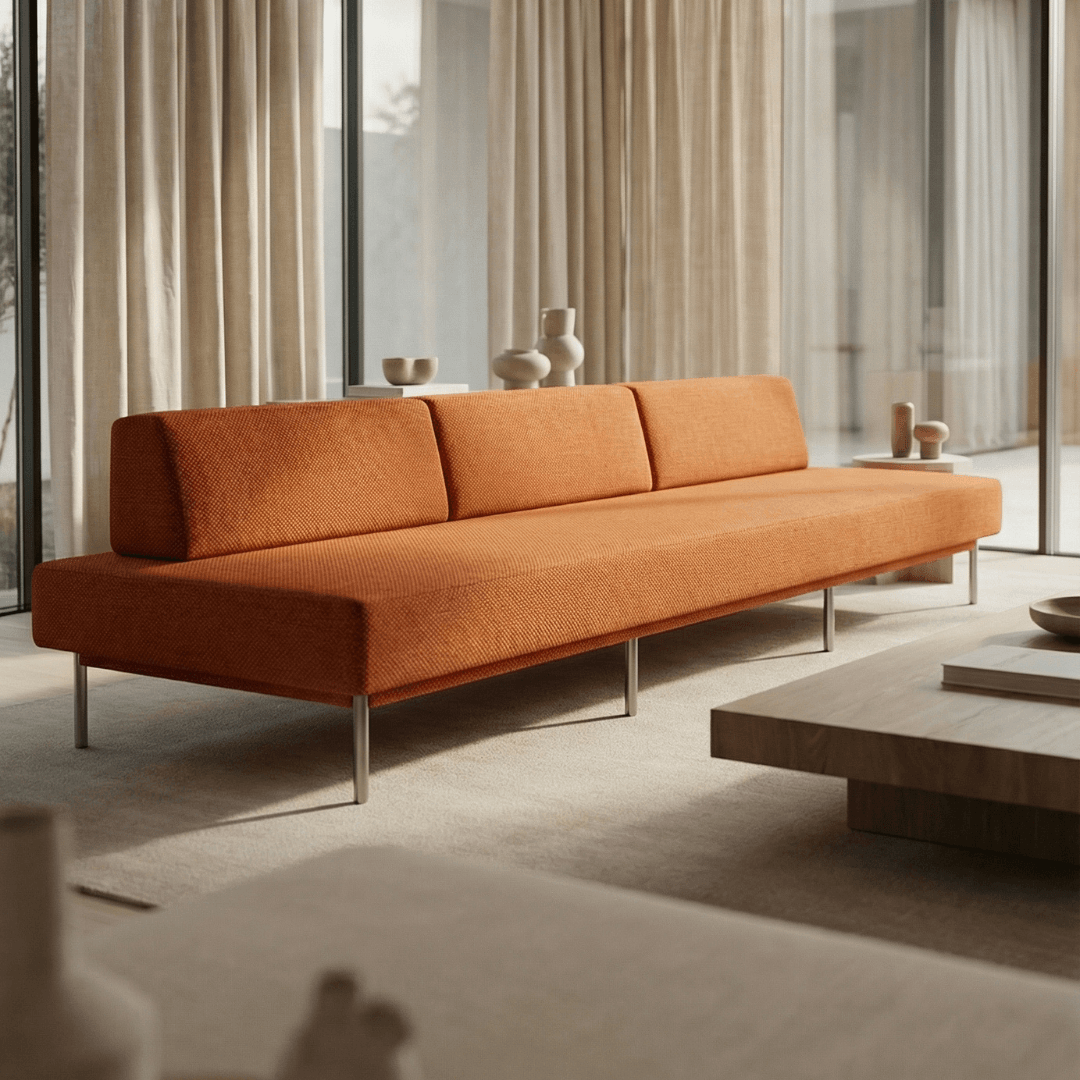 Com design modular, ele proporciona flexibilidade na decoração, permitindo diferentes layouts. Seus encostos removíveis permitem que uma só peça se transforme em várias de acordo com a alocação deles. E destaque para a base removível em inox.