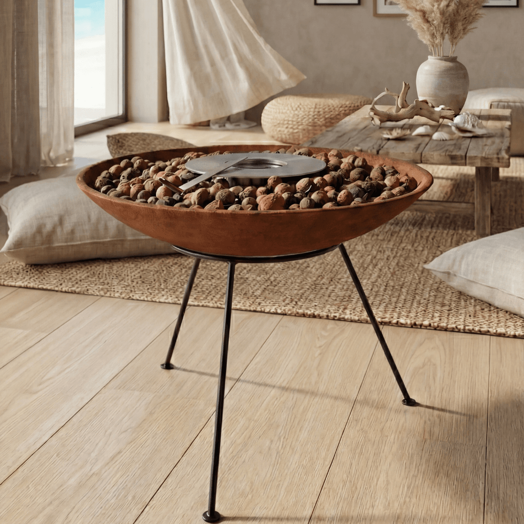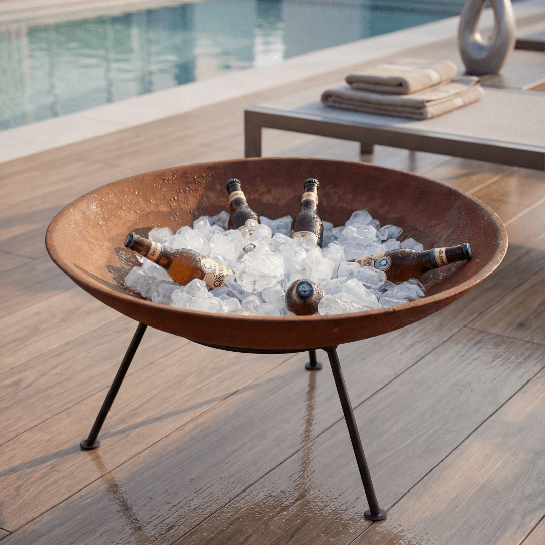 O Tacho Corten HIO foi projetado para criar momentos especiais em qualquer estação. Durante o frio, é utilizado como fogueira. Já nos dias quentes, sua função é adaptada, podendo ser preenchido com gelo e bebidas, o que amplia sua versatilidade e uso ao longo do ano.